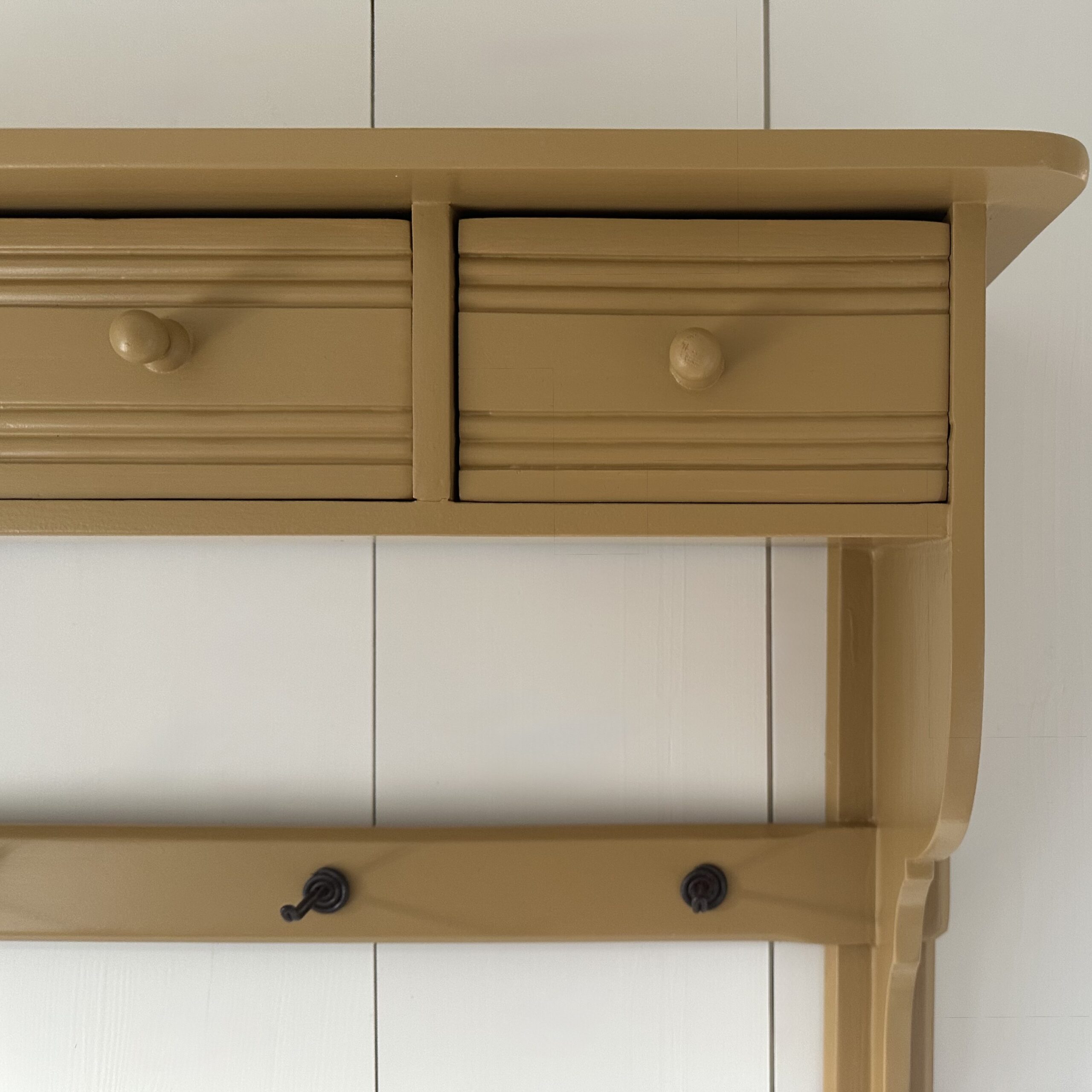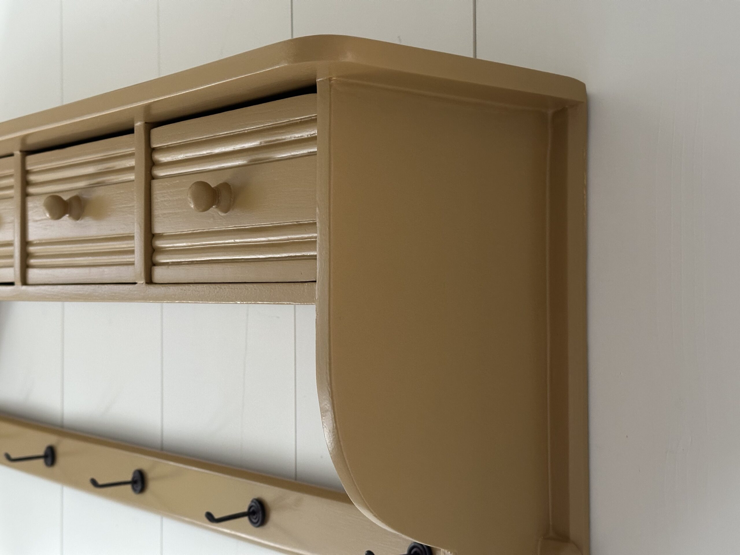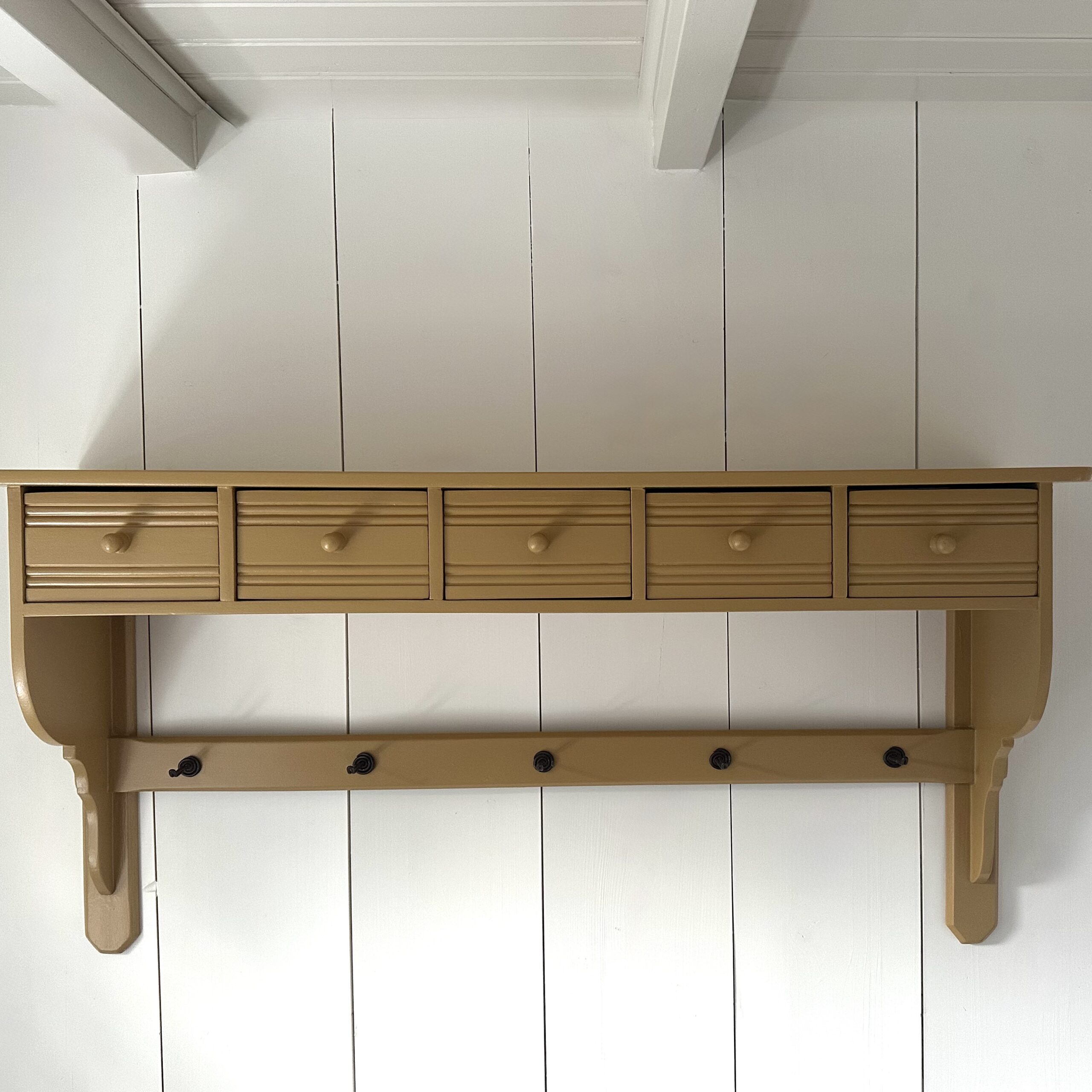 Eikenhouten wandrek/regaal met vijf laatjes  in een mooie oude
